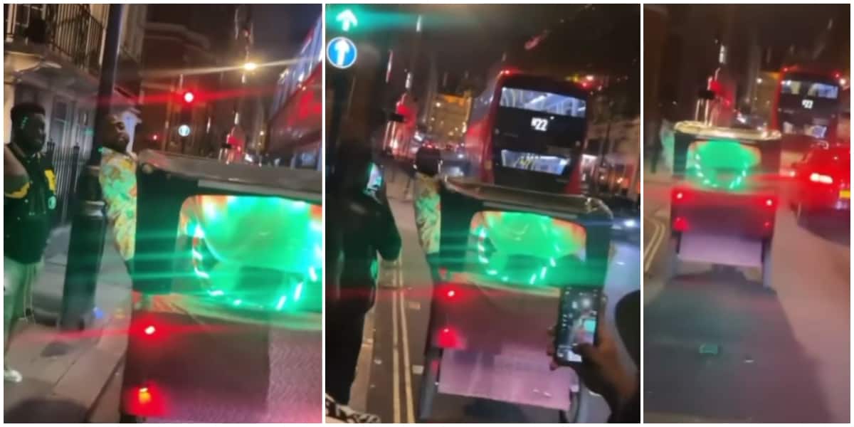 Davido acts as a conductor in London, jumps on a touching ‘Keke Napep’ as his boys run after him