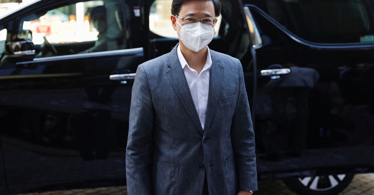 Hong Kong’s former Chief Administration Secretary John Lee arrives at his office after the Central People’s Government approved his resignation, in Hong Kong, China April 8, ... -